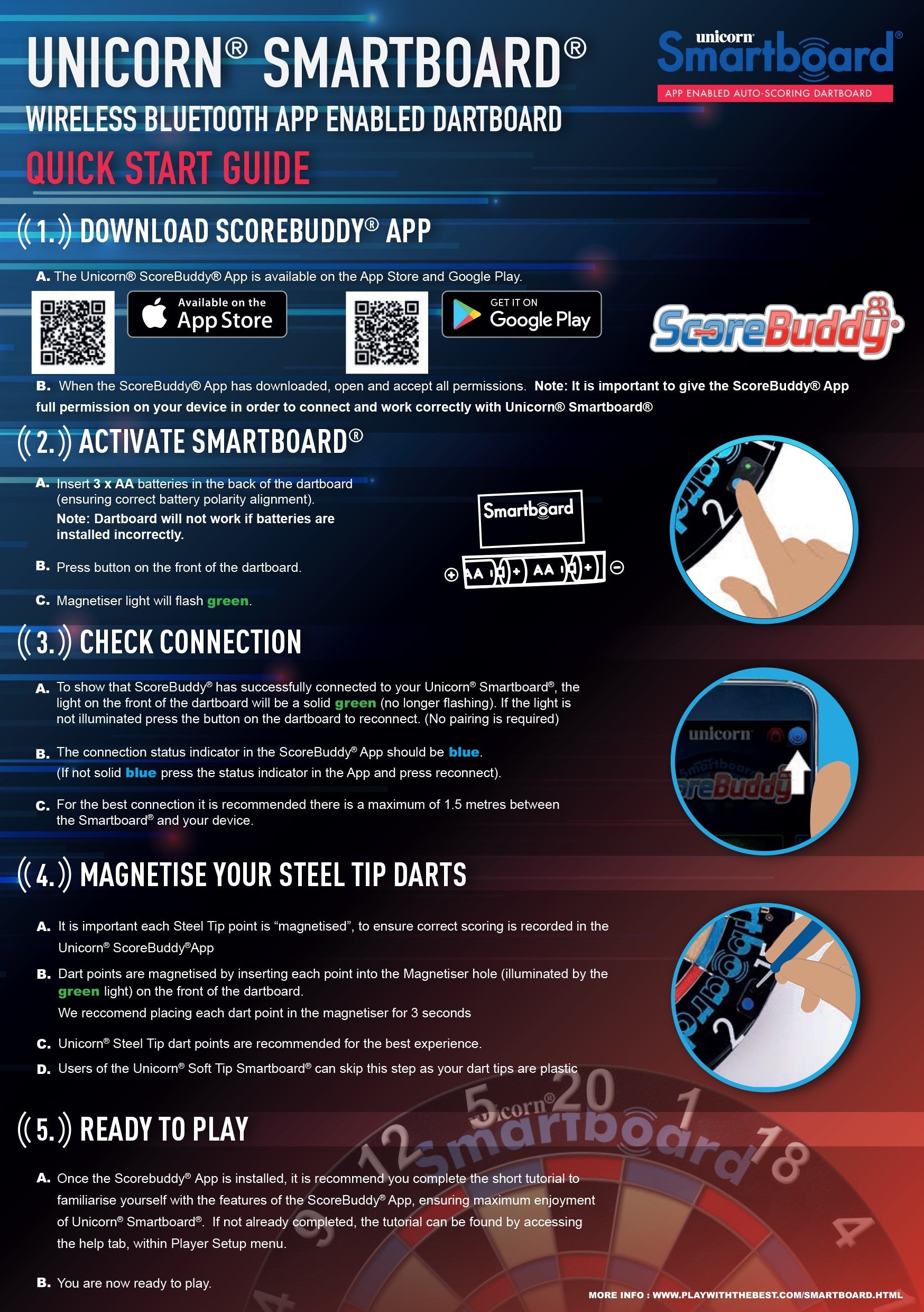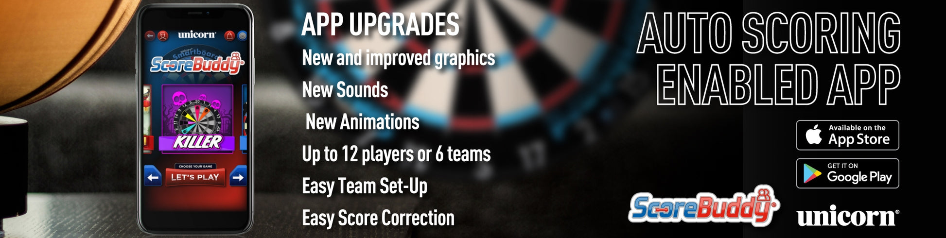 Now, we introduce the revolutionary new Unicorn Smartboard, the world’s first app-enabled auto-scoring dartboard. With instant scoring, made possible by the amazing Unicorn Scorebuddy app. You can play 6 exciting games suitable for all ability levels. Either social or professional, it’s darts re-invented to be fun for everyone!