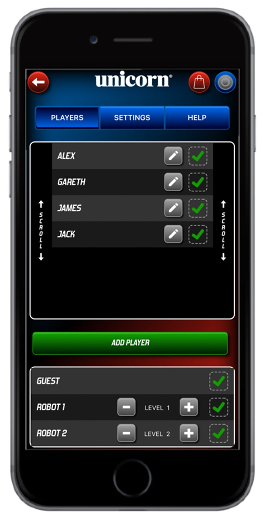 With Bluetooth LE connectivity, the Unicorn Smartboard instantly transmits the score of every dart to the Scorebudy app on your mobile device or tablet. Included in the Scorebuddy app is the ability to auto-score 6 different game modes, ranging from the traditional 01 games to ‘Around The World’.