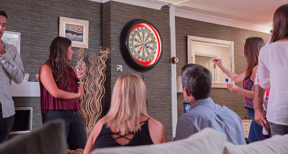 The Smartboard comes complete with 6 steel-tipped darts, although any steel-tipped darts are compatible, and is also fully portable with no mains connection required. Our Oche Mate measuring tape is also supplied to correctly measure board height and oche standing position. Just insert 3 x AA batteries and you are ready to go!